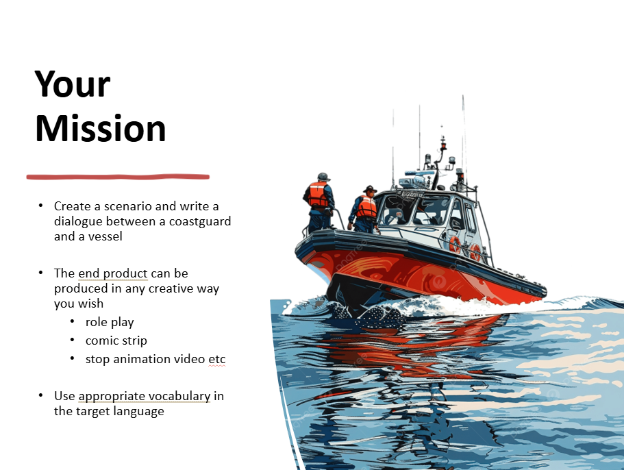 This expanded project unfolded in three stages: initial pupil-led research and question development, pre-recorded partner presentations from various international locations, and hands-on tasks replicating professional scenarios. These included designing a multilingual tourist leaflet, and role plays such as a coastguard emergency call and a sports interview. Tasks were devised by the partners and delivered in class, with final submissions judged by the professionals. Winners received prizes, and feedback from both learners and partners was overwhelmingly positive.